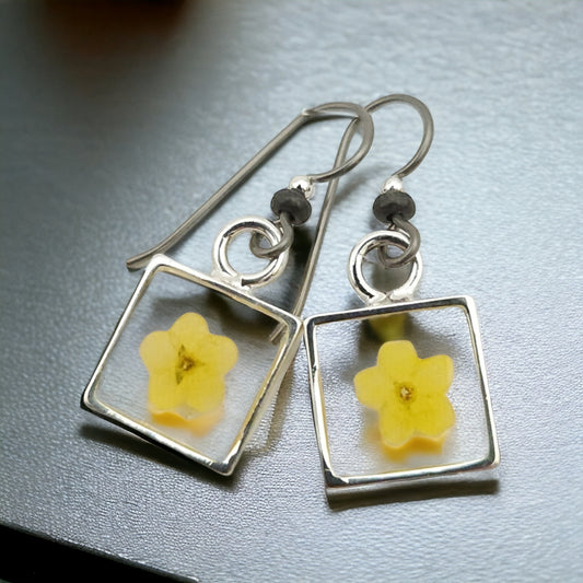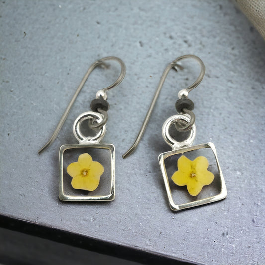 Forget-me-nots Yellow Flower Earrings In Small Silver Bezel