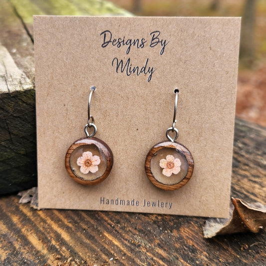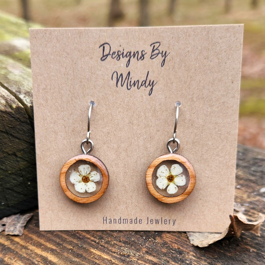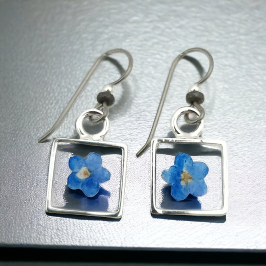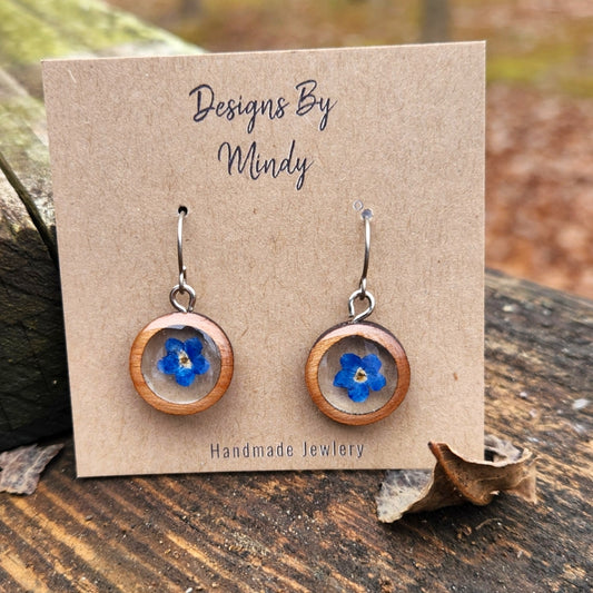 Forget-me-nots Blue Flower Earrings In wood bezel