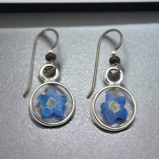Forget-me-not Blue Flower Earrings In Tiny Silver Bezel