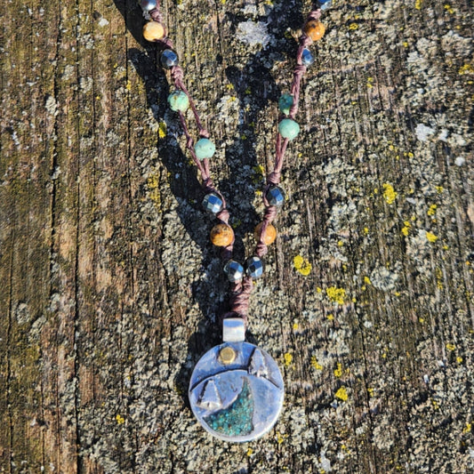 Silver Pendant- Trees with a Turquoise River with hand-beaded necklaces