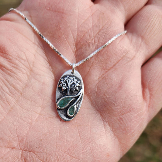 Silver Pendant-Tree of Life with Turquoise accents