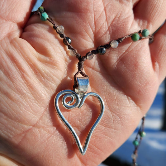 Silver Pendant- Open Heart with hand-beaded necklaces